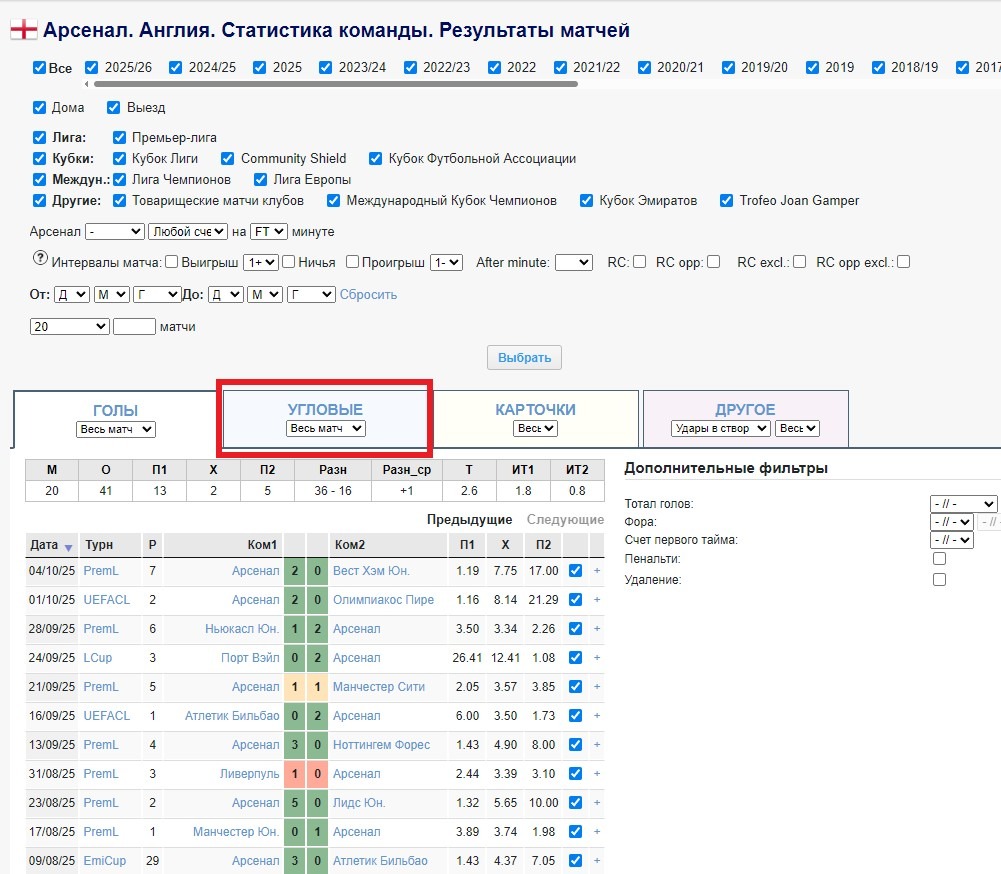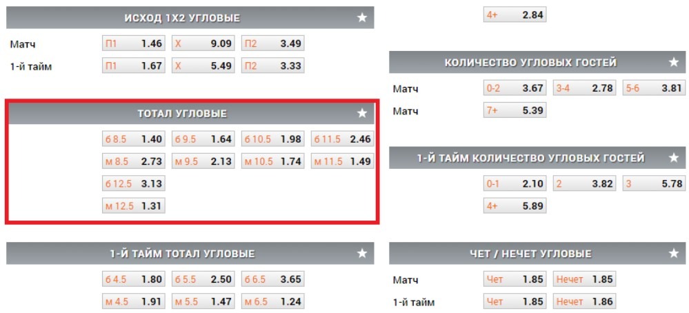 Существуют и другие факторы/индикаторы, на основании которых можно делать ставки на тотал угловых:
