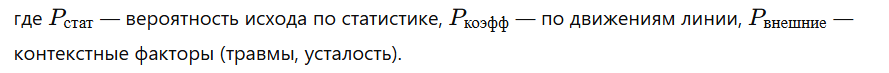 Например, если нападающий делает 3,5 удара в створ за матч при реализации 18 %, можно ожидать гол в среднем в каждом третьем матче. Эти данные применяются для прогнозов на индивидуальные исходы (тотал игрока, “забьёт/не забьёт”, ассист).